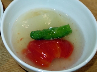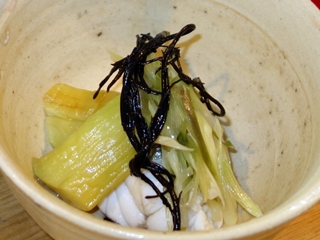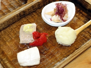 ヤリイカ、マフグ、なす、ミョウガ、長ひじき、ゴマだれ