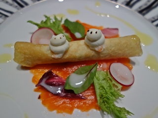 サーモンの自家製マリネ ポテトサラダのクレープ巻き