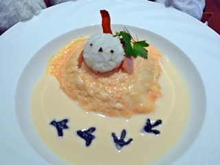 パルメザンチーズを 纏った鯛のブランダードと共に…