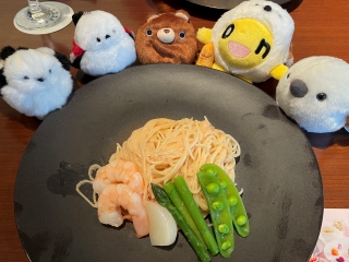 ・レモンアロマのスモークを纏った海老と春野菜のタラコスパゲッティ