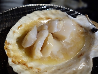 ホタテ焼き。海老とタラバガニも。