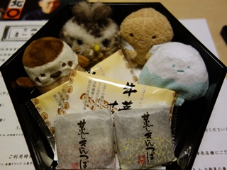 蒸しきんつばと牛蒡せんべい。
