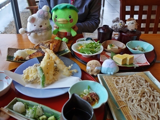 手前が五種盛り天麩羅セイロ蕎麦(田舎蕎麦)。