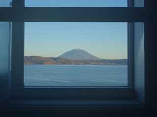 温泉に浸かりつつお風呂の窓から見る羊蹄山。