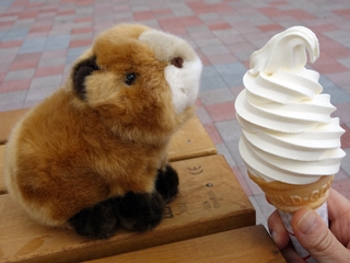 「道の駅 とうま」にてすいかソフトをいただいく。