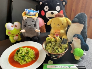 緑色の正体は粉末で麺や衣に練りこまれたブロッコリー。