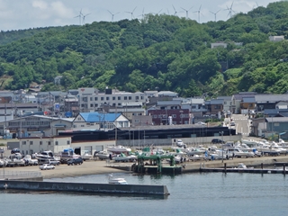 散歩の途中、奥尻島からのフェリーが入港。