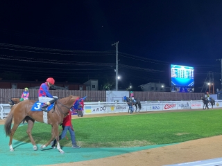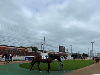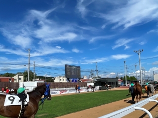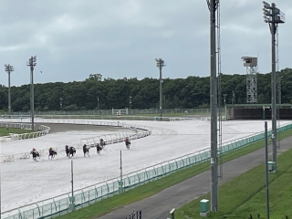 二階に陣取ると直射日光を避けつつパドックも見られる。
