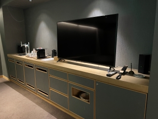 プロジェクター対面の壁にはテレビや冷蔵庫など。