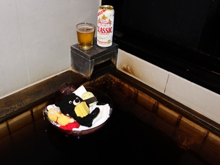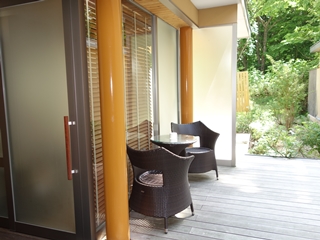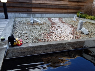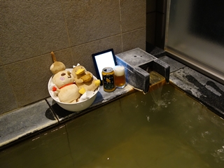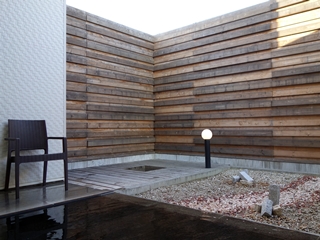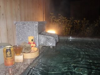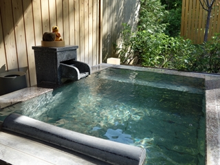 お庭と空を眺めつつ、お湯に浸かってまったり。