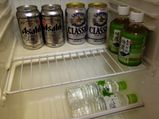 スイートなので冷蔵庫にはサービスドリンクあり。