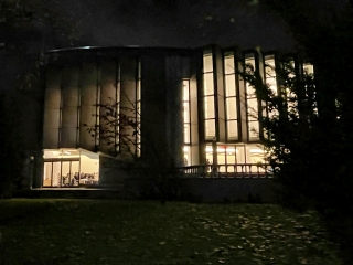外から大ホールのロビーを見ると・・・