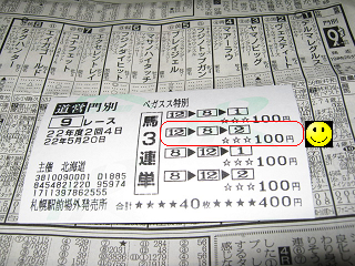 今年の道営初当たりは意外に早く、参加して3戦目の9Rだった。