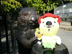 園外の売店で購入してきた「ふくまる」(右)も記念撮影。