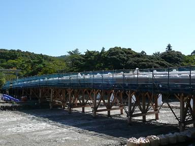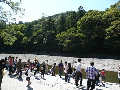 仮の橋を渡って天照大神を祀る内宮=皇大神宮へ。