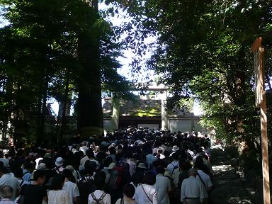 乗って内宮へ。近づくと駐車場待ちの車の果てしない