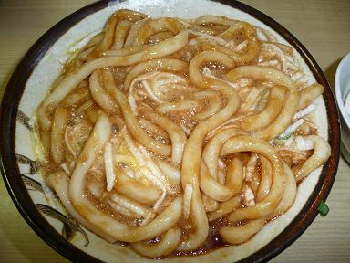 柔らかくて太い、ねちゃっとしたうどん。
