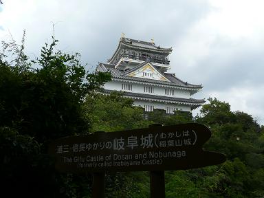 看板には「道三・信長ゆかりの岐阜城」とある。