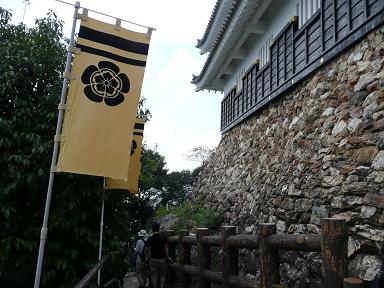 城の周囲には織田木瓜の旗。