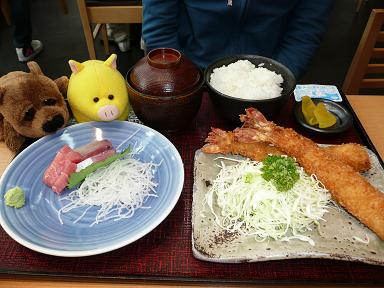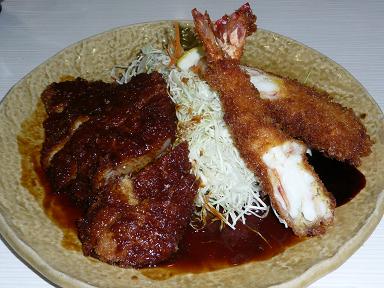 ツレの「ロースカツ&エビフライ」1890円。エビでかっ!