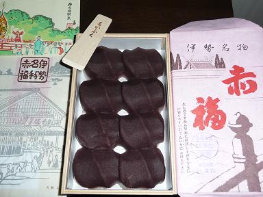 最後は名駅で買った「赤福」。夕食代わりに遅い時間にいただく。