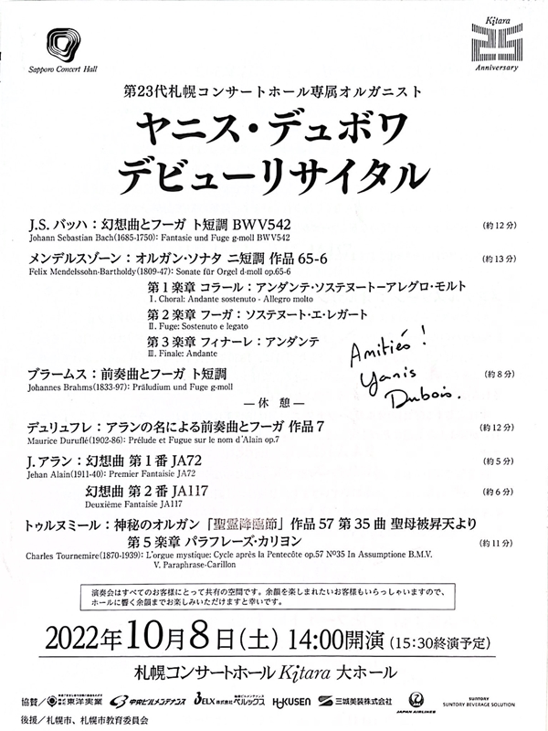 ヤニス・デュボワさんのデビューリサイタル。