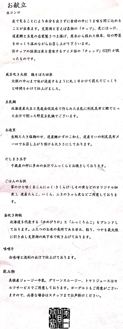 「ご朝食のお献立」