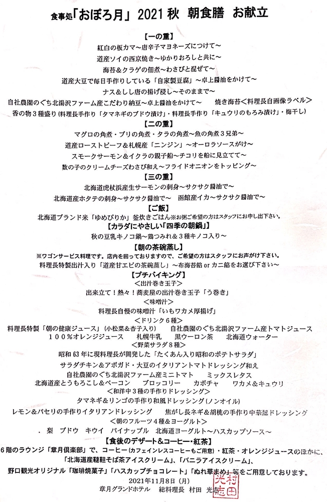 「2021秋朝食膳」