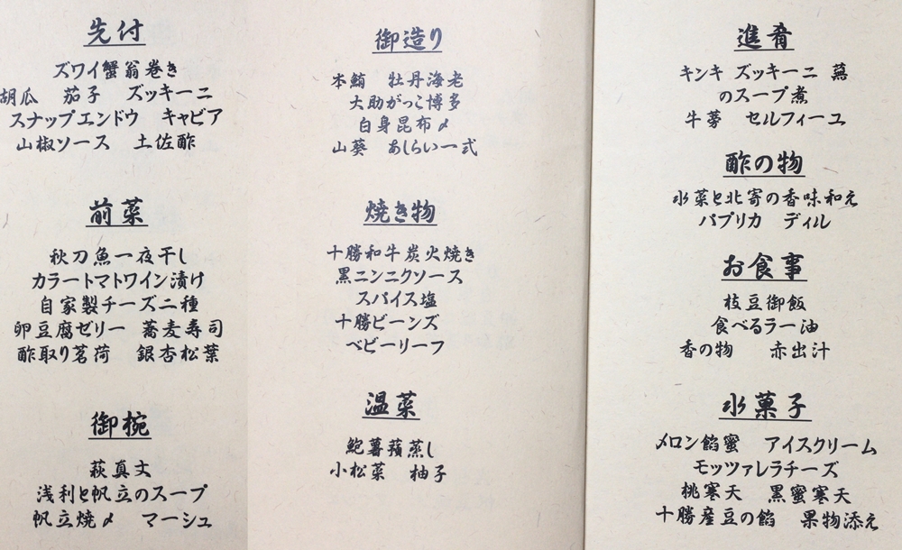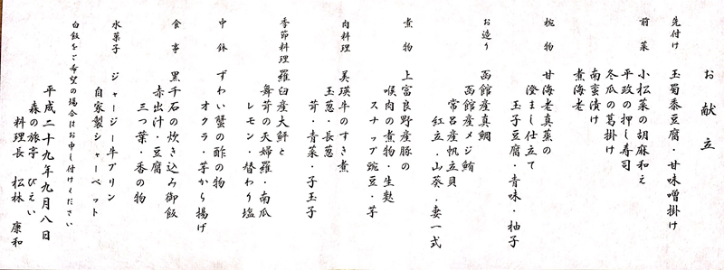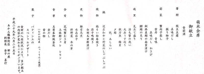 コースは「萌木会席」のままだけど・・・