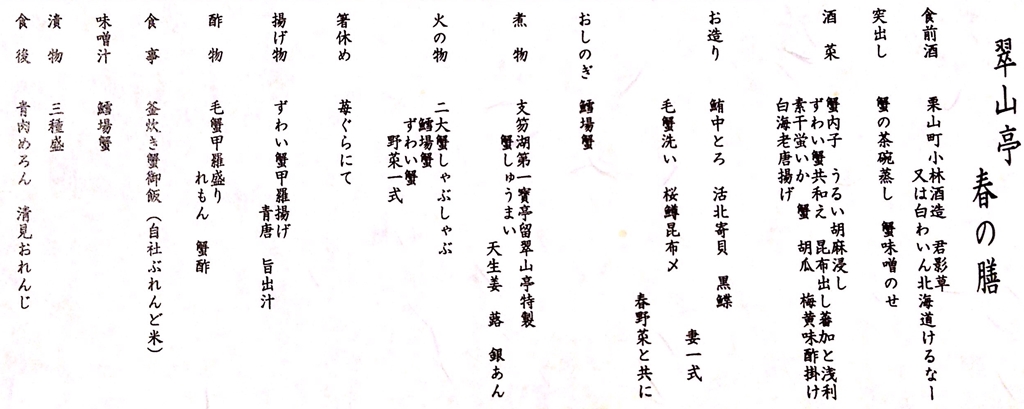 「翠山亭 春の膳 (特別蟹会席膳)」