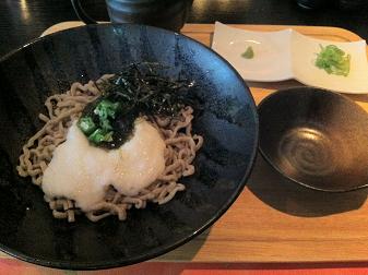 そば粉と海草粉末で作られた太ちぢれ麺にとろろいもと