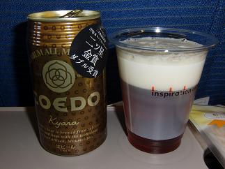 機内では、COEDOビールを飲んでみた。