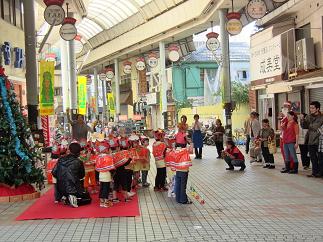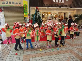 途中、クリスマスイベントで、保育園の子どもたちが