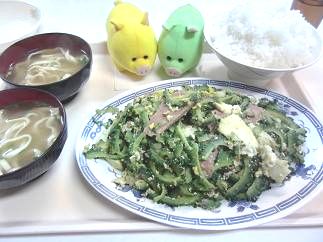 ゴーヤーチャンプルー650円。何とミニそばを2つ付けてくれた。